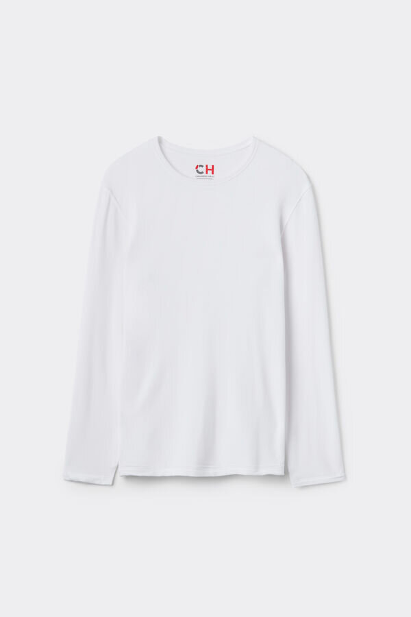 men’s long-sleeve round-neck top in a modal-cashmere blend. incredibly soft and comfortable. the model is 185 cm tall and wears size l. sold in intimissimi man stores.