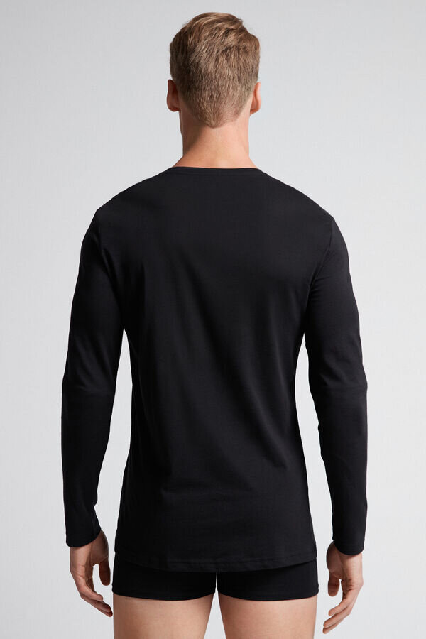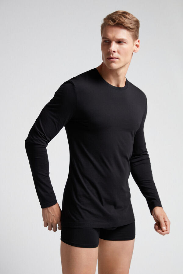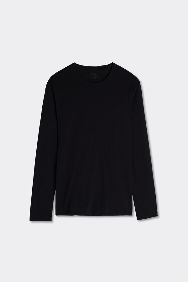long sleeve crewneck top in 100% superior cotton. the fiber of the highest quality, incredibly soft and breathable, it features optimal elasticity even though it is free of elastane. the structure of the fabric guarantees excellent durability from washing. a simple and cozy top, ideal to wear on any occasion, either as an undergarment or on its own.