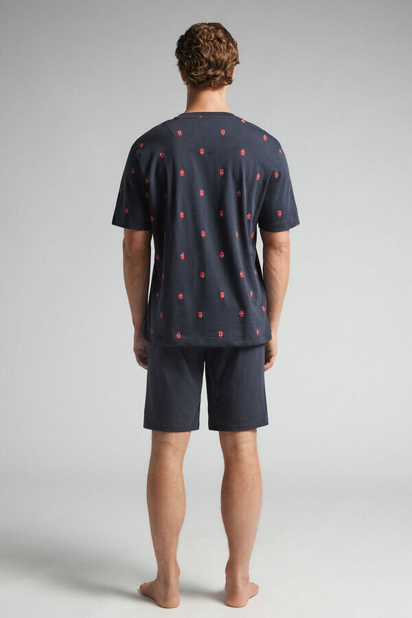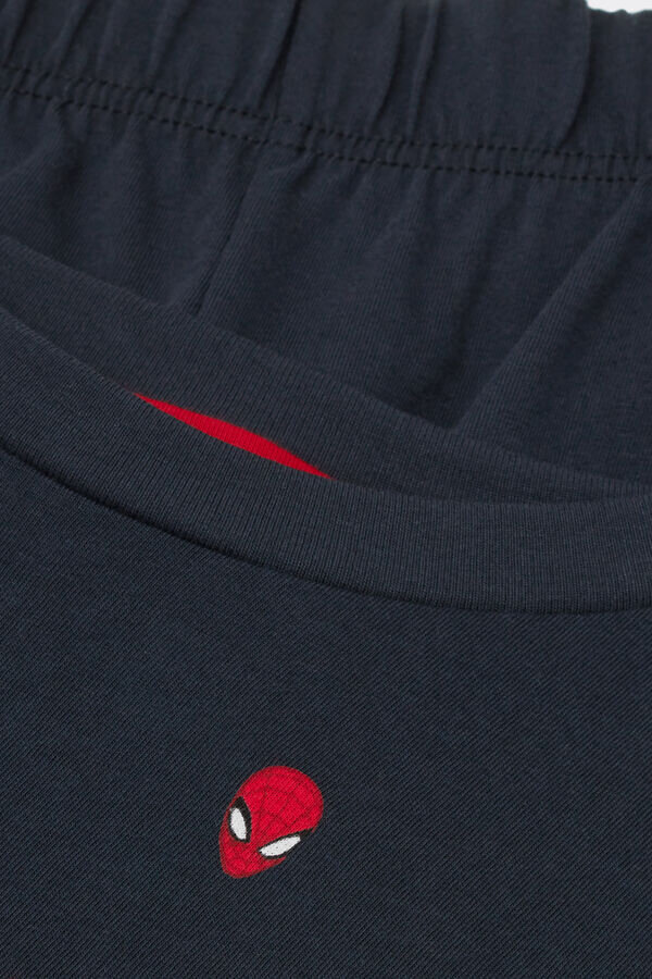 short pajamas in cotton jersey with all over print and flocked spider-man text on the top. solid color pants with spider-man print.