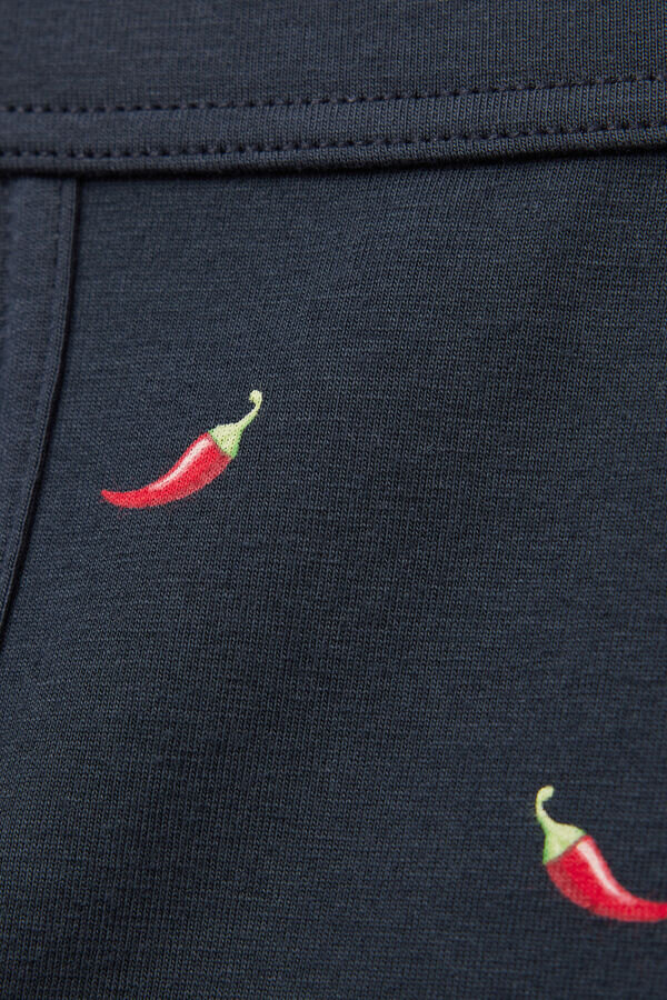 men’s boxers in soft superior light stretch cotton with all over hot pepper print.