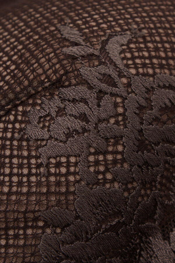 elena balconette bra with underwire and semi-padded cups that provide soft support and a natural effect. it is made with a sophisticated and elegant stretch lace that features either a tone-on-tone or contrast color floral embroidery, depending on the version presented. for bras from cup size 38 (34d, except for 36c and 38b), the interior cup lifts to hug the bust and, in the same sizes, a lace underband has been inserted which provides better support. also, the underband is higher to embrace and better adhere to the body. the straps are adjustable in back. ideal to wear with deep necklines for a feminine and sensual look.