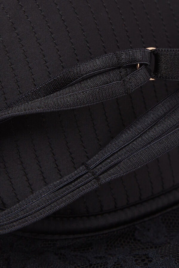 ilenia balconette bra with stitched satin cups combined with floral lace at the underband for a feminine style with a retro taste. sensual shoulder strap detail with three straps and deep neckline created to highlight and emphasize the bust and the décolleté.