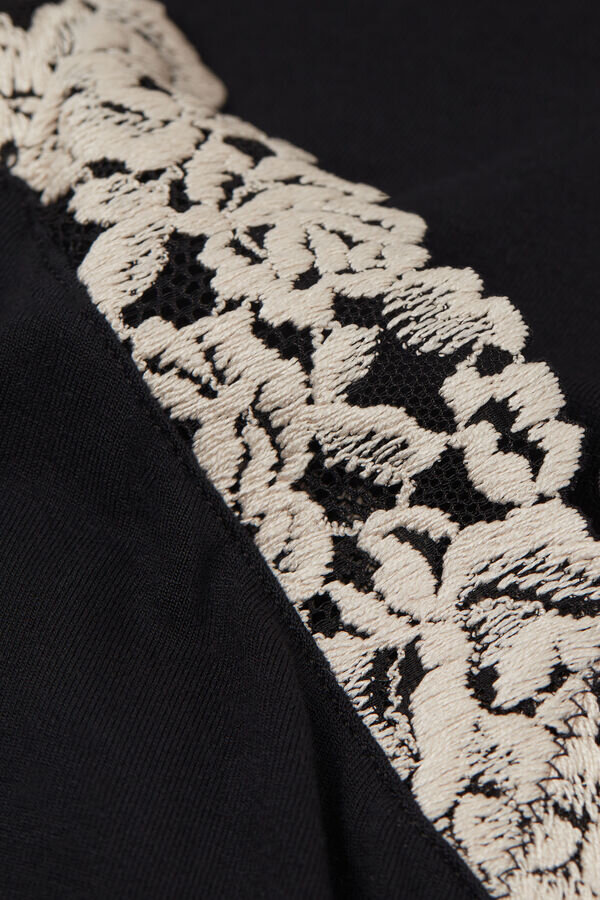 v-neck top made in modal and embellished with a lace ruffle. based on the color chosen, the lace can be of contrast color or tone-on-tone. thin straps lined in micromodal.