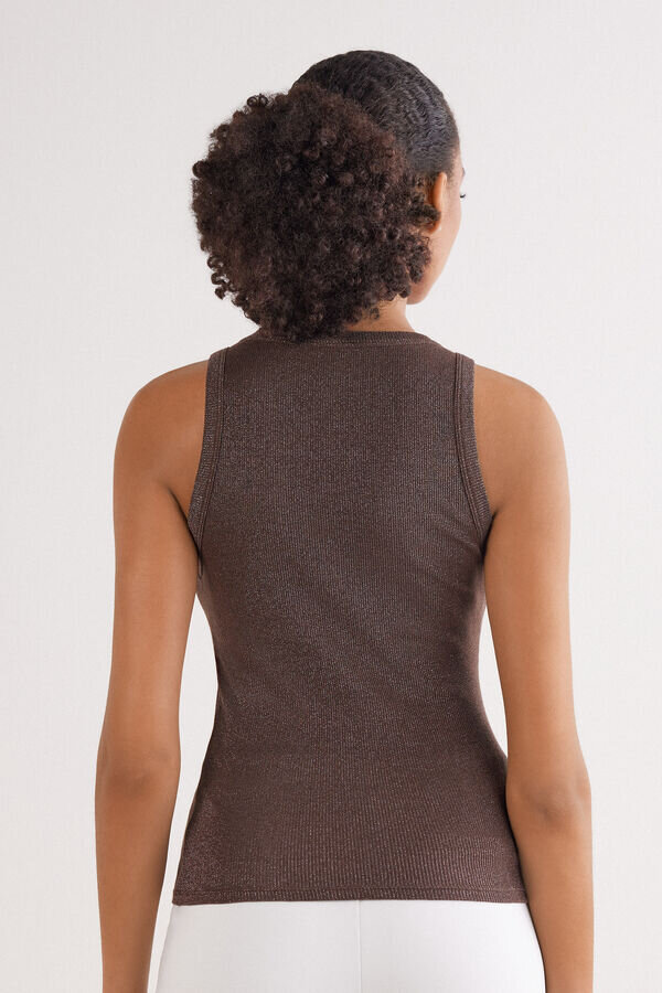 Ribbed Cotton Lame Tank Top