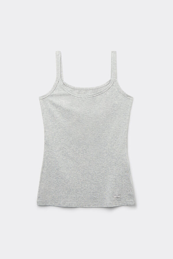 this spaghetti strap tank top is crafted in a cotton-rich stretch blend, offering a soft feel with a clean, minimalist cut. fine straps and a gently scooped neckline shape a feminine silhouette that sits close to the body for a sleek, modern look. whether worn solo or styled under shirts and knitwear, this streamlined spaghetti strap cami works as a versatile base for any outfit. the fabric offers subtle stretch that moves with you, maintaining its shape throughout the day without clinging. soft trims at the neckline and arms enhance comfort, while the breathable construction allows air to circulate and keeps the fabric feeling fresh against the skin. available in a wide range of colors, this thin strap tank top is a wardrobe essential designed for everyday ease and lasting comfort all year round.