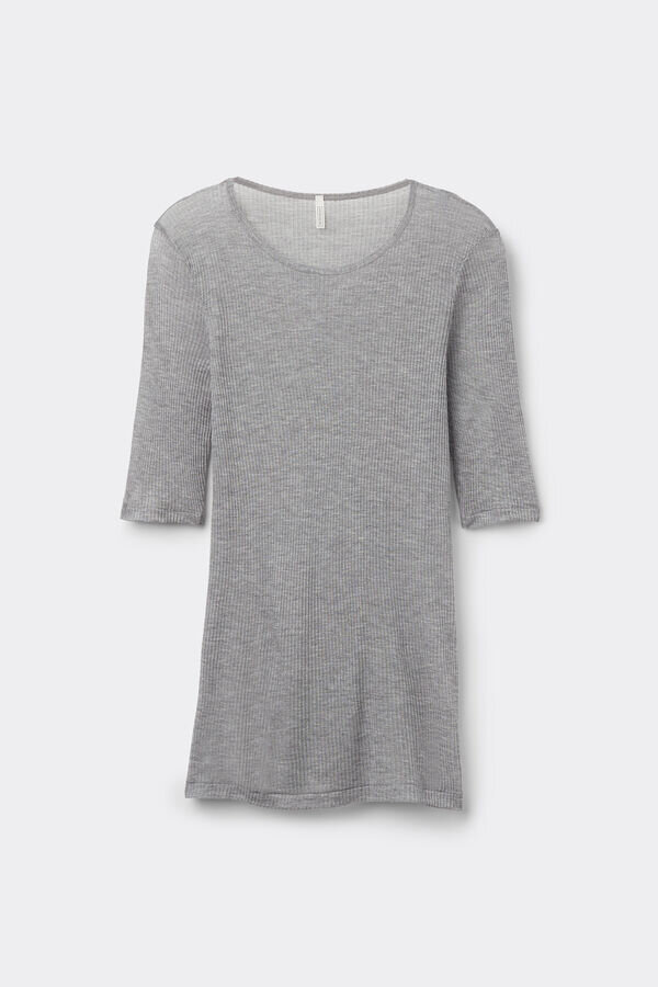 tubular top in soft ribbed modal and cashmere blend. light and slim fitting, it may be worn alone or underneath a jacket thanks to its sensual sheerness and fluid, drapey fit. for those who tend to feel chilly, it can be a comfortable top to wear under clothes.