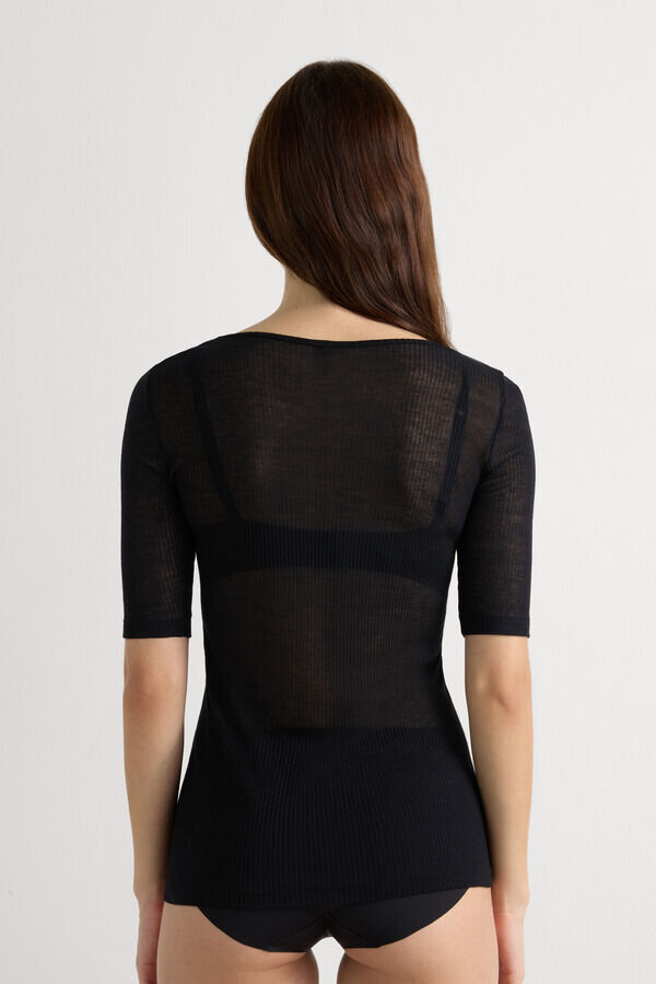 tubular top in soft ribbed modal and cashmere blend. light and slim fitting, it may be worn alone or underneath a jacket thanks to its sensual sheerness and fluid, drapey fit. for those who tend to feel chilly, it can be a comfortable top to wear under clothes.