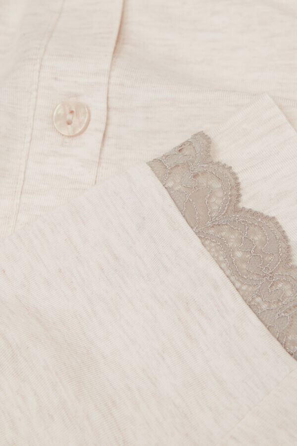 Lace Trim Button Up Full Length Pajamas in Modal