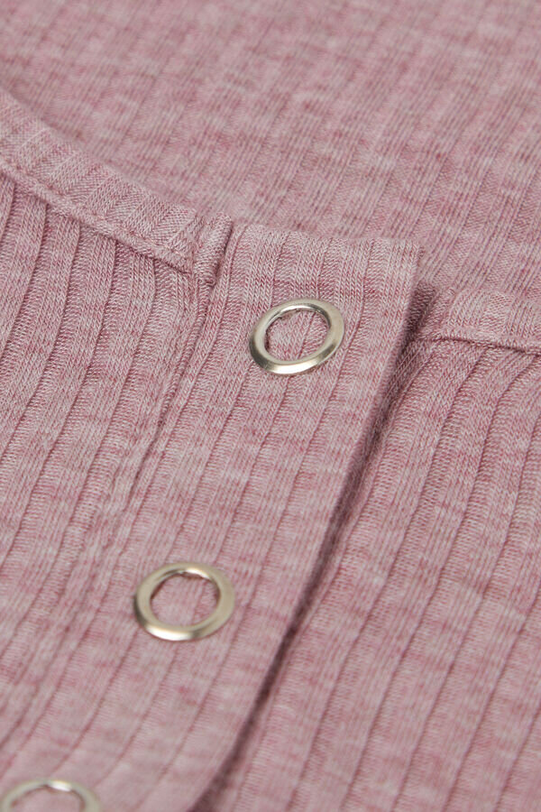 top in soft ribbed modal with automatic button detail at the neckline.